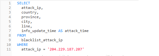 2、攻击IP用户表blacklist_attack_ip指定具体的IP获取信息: