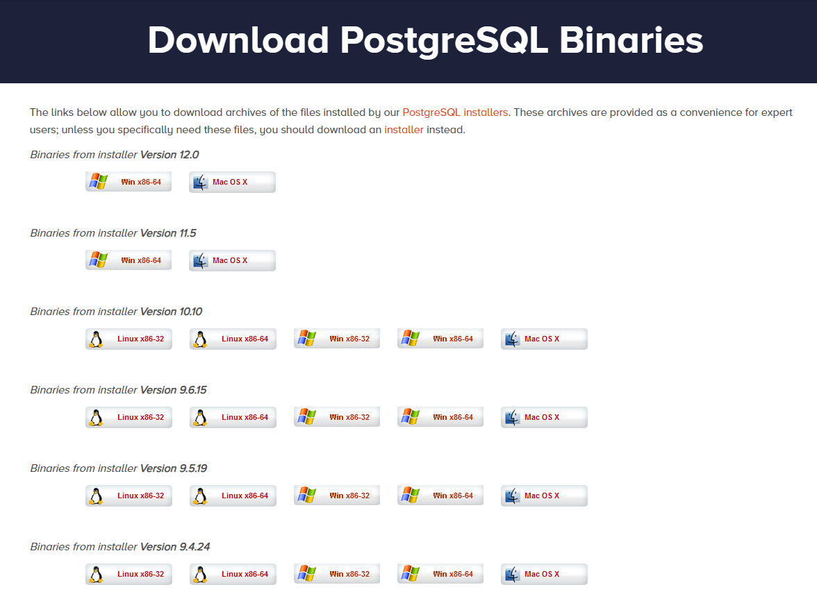 然后就来到最终的pgsql下载页了,地址为:https://www.enterprisedb.com/download-postgresql-binaries